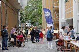 A bibliotéka belső udvarát 38 millió forintból varázsolták újjá: cserélték a térköves burkolatot, egyedi utcabútorokat és játékokat helyeztek ki.