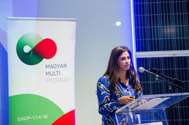 Budapest, 2020. szeptember 21. Szentkirályi Alexandra kormányszóvivõ köszöntõt mond a Magyar multi program oklevélátadó ünnepségén a budapesti Millenáris Parkban található IFKA Elektromobilitás Látogatóközpontban 2020. szeptember 21-én. Összesen 7,6 milliárd forint értékben 37 vállalkozás nyert támogatást a programban.