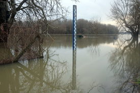 A megáradt Tisza vízmércéje Tiszakeszinél 2024. február 19-én