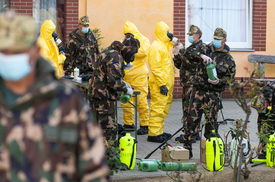 A honvédség április 12-e óta folyamatosan végzi a fertőtlenítést az idősotthonokban és a kórházakban, ugyanezt a feladatot végzi el az ide kirendelt egység is – mondta. A százados tájékoztatása szerint a folyamatot teljes védőruházatban, két ütemben hajtja végre az állomány, elsőként egy melegködképzős hidrogén-peroxid és nátrium hipoklorid alapú, majd egy másik típusú fertőtlenítőszerrel permetezik le a lakószobákat, a vizesblokkokat, az orvosi helyiségeket és más közösségi tereket. Az MTI megpróbálta elérni a Tündérkert Szeretetotthon tulajdonosát, de az intézményben senki sem vette fel a telefont.