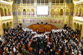 Az Országgyűlés elnöke úgy fogalmazott: száz évvel ezelőtt Európában egy véres területfoglaló háború zárult le, napjainkban pedig „egy tudatfoglaló háború” kezdetét éljük, és csak remélni tudjuk, hogy ez a küzdelem vértelen marad.