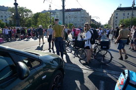 A Margit hidat lezáró tüntetők a pesti hídfőnél 2022. július 18-án