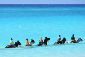 A méregdrága tengeri lovas túrákra ilyen és ehhez hasonló képekkel csalogatják a milliárdosokat, a tengeri lovaglást a fényűző, magamutogató luxus megnyilvánulásának tekintik.