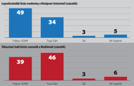 A közvélemény-kutató intézetek legfrissebb, októberi és novemberi adatai jelentős eltéréseket mutatnak a Fidesz és a Tisza Párt támogatottságában. Míg a Nézőpont Intézet, a Századvég és a Real-PR 93 a Fidesz jelentős előnyét jelezte, addig az Idea Intézet, a Medián, a Republikon Intézet és a 21 Kutatóközpont a Tisza Párt előretöréséről beszél. A Real-PR 93 kutatása alapján a Fidesz–KDNP-nek a biztos szavazók körében 44, a Tiszának pedig 35 százalékos támogatottsága van. A Nézőpont kutatása szerint a Fidesz a teljes népességben 38, a Tisza 25 százalékon áll, a legvalószínűbb listás eredmény alapján szerintük a Fidesz 49, míg a Tisza Párt 34 százalékot érne el. A Századvég október végi pártpreferencia-kutatása alapján a Fidesz–KDNP stabilan vezeti a pártok rangsorát. A politikailag aktív magyar lakosság körében jelenleg 43 százalékon állnak a kormánypártok, a Tisza Párt pedig kilenc százalékpontos hátrányban van. A Republikon Intézet felmérése szerint ugyanakkor a Tisza Párt vezet a kormánypártok előtt. Horn Gábor intézete a teljes népességben 24-26 százalékpontot mért a Tisza javára, a pártválasztók körében viszont két százalékponttal előz a kormánypárt. Az Idea Intézet kutatása szerint is megelőzte a Tisza a Fideszt, az ellenzéki párt a teljes népességben 30, míg a Fidesz 28 százalékot mondhat magénak, a biztos szavazók körében a Tisza Pártnak 41, a Fidesz–KDNP-nek 38 százalékot mértek. A legnagyobb különbséget a két párt között a Medián hozta ki. Kutatásuk szerint a Tisza Párt egy mostani választáson nemcsak legyőzné a Fideszt, de több szavazatot kapna, mint a Fidesz és a Mi Hazánk együtt. A biztos szavazók körében a Tisza Párt 46, a Fidesz–KDNP 39 százalékon áll. A Momentumnak is dolgozó 21 Kutatóközpont felmérése szerint a Tisza Párt előnye hibahatáron belül van, de az ellenzéki párt már szerintük is vezet a Fidesz előtt. Mérésükben a Tisza Pártra 42, a Fideszre pedig 40 százalék szavazna a választásukat biztosra ígérő, pártot választani tudó szavazók között. A Publicus Intézetnek a Népszava megbízásából készült felmérése szerint a Tisza Párt mind a teljes népességben, mind a biztos szavazó pártválasztók körében megelőzte a Fideszt. A teljes népességben a Tisza 24, a Fidesz pedig 23 százalékon áll, a választási részvételüket biztosra ígérők és pártot is választók csoportjában pedig 39-37 az arány Magyar Péterék javára.