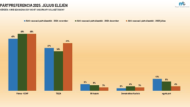 A Magyar Társadalomkutató hat hónappal legutóbbi pártpreferencia-kutatása után, 2025 július elején is felmérést készített arról, hogy egy esetleges azonnali választáson miképp szerepelnének a magyarországi pártok.