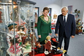 Latorcai János, az Országgyűlés kereszténydemokrata alelnöke és Závogyán Magdolna, a Kulturális és Innovációs Minisztérium kultúráért felelős államtitkára a babamúzeum kiállításán a megújult Vidovszky Béla Városi Képtár, az Aranka Játékbaba Múzeum és a Kállai Ferenc-emlékkiállítás újranyitása alkalmából tartott ünnepségen Gyomaendrődön 2024. október 4-én
