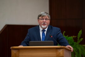 Dézsi Csaba András polgármester beszél a nyugat-dunántúli régió nyugállományú katonáinak találkozóján a gyõri Dánielfy Tibor 205. Légvédelmi Rakétaezred elõadótermében 2023. szeptember 19-én.
