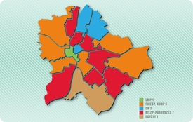 Budapest egyéni választókerületei és a megszerzett mandátumok eloszlása. Kép forrása: valasztas.hu