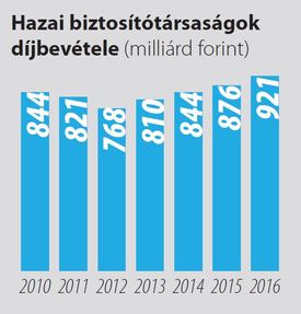 921 milliárd forintTöbb mint öt százalékkal bővült tavaly a hazai biztosítási piac. A díjbevétel az egy évvel korábbi 875,8 milliárd forintról 920,6 milliárd forintra emelkedett, gyakorlatilag a válság előtti szintre kapaszkodva – derül ki a Magyar Biztosítók Szövetsége (MABISZ) adataiból.