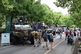 A Magyar Honvédség bemutatója a Szent István-napi rendezvénysorozathoz kapcsolódó Varázsliget című rendezvényen a Vajdahunyad várnál 2022. augusztus 21-én. MTI/Máthé Zoltán