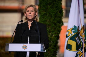 Varga-Bajusz Veronika felsőoktatásért, szak- és felnőttképzésért, fiatalokért felelős államtitkár beszédet mond a Debreceni Egyetem egykori névadója, gróf Tisza István halálának 107. évfordulója alkalmából rendezett megemlékezésen az egyetem főépülete előtt, a néhai miniszterelnök szobránál 2025. október 31-én