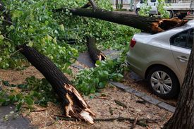 Autóra dőlt fa a vihar után Szegeden 2025. július 7-én. Országosan 2200 tűzoltói beavatkozásra volt szükség a vihar miatt.