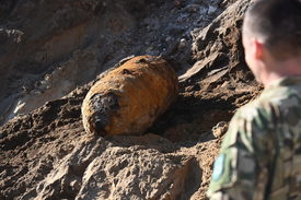 Második világháborús bomba a XIII. kerületi Reitter Ferenc utcában egy építkezésen a hatástalanítás napján, 2021. július 29-én.