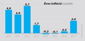 2 százalék fölötti inflációra öt éve nem volt példa Magyarországon: utoljára 2012-ben mértek 5,7 százalékos drágulást. Sőt, tavalyelőtt és az azt megelőző évben néhány tized százalékponttal csökkentek az árak, előbb a kormányzati rezsicsökkentés, majd az üzemanyagárak nemzetközi zuhanása miatt. Ezek hatása azonban már kifutott a bázisból, sőt a jelenlegi magasabb infláció fő oka éppen az, hogy az üzemanyagok ára visszakapaszkodott a 2016 elején mért szintre.