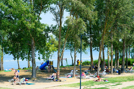 – Az újjáéledés korszakát éljük azzal a lényeges különbséggel, hogy az aktuális idegenforgalmi koncepciót és marketingstratégiát már a céltudatosság jellemzi. Leginkább az egyre nagyobb számban idelátogató családokra és az aktív pihenésre vágyókra koncentrálunk. A kerékpárúton érkezők egy órát térítésmentesen eltölthetnek a megújult strandon, amelyet két különböző forrásból modernizáltunk. A gát vízparti oldalán 400 millió forintos uniós támogatásból sétányokat, plázsokat, új hárompályás csúszdát, sportpályákat, valamint játszóteret építettünk, illetve az árvízvédelmi szempontoknak is megfelelő mobil, családbarát vizesblokkokat. A gát túloldalán többek között lebontottuk a már elavult büfésort, és új, egységes arculatú vendéglátóblokkokat hoztunk létre, köztük egy panorámás látványkávézót, de helyet kapott egy ezer négyzetméteres, többfunkciós, részben fedett rendezvényhelyszín is – sorolja a legfontosabb fejlesztéseket Balogh Gyula.
