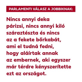Kifogásolta, hogy a Jobbik elnöke, Jakab Péter nem szólalt fel a Házban, mert akkor szerinte el kellene számolnia az elmúlt évtizedek „legelvtelenebb politikai kezdeményezésével”, azzal, hogy egy nemzeti mozgalmat integrált a baloldalba.