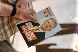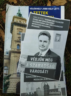 – Márki-Zay Péter másolja a Fidesz kommunikációját, csak turbófokozatban. Ügyeket talál ki, az ostromlott vár toposzával kampányol – „a Fidesz és Lázár ki akarják véreztetni a várost, tönkre akarják őt tenni, de állni kell a sarat, hogy szabadon élhessünk”. Állandóan az eredményeiről beszél, és jócskán felnagyítja őket. Arra gondolok, hogy még egy új zebrát is szalagátvágással adnak át, ezt pedig bemutatja a helyi és a közösségi médiája. Amit különben jól használ, ügyesen szólítja meg a választókat, valószínű, hogy ezt a habitust Amerikában tanulta el. Eleinte havonta, mostanában pedig kéthetente adják ki a Vásárhelyi Valóság című lapot, amelynek fele az eredményeiről szól, a másik fele pedig arról, hogy Lázár János lop. Utóbbit szájbarágósan ismételgetik, a Fidesz pedig szerintem nem bírt reagálni minden egyes állításra és vádra, pedig kellett volna. 22 ezer háztartás van a városban, mindegyikbe eljuttatják ezeket a kiadványokat, kiszámolható, hogy ez tetemes pénzbe kerül. Egyszerű, fénymásolt szórólapokat pedig hetente dobálnak be a postaládába – mondja V. Attila, és elővesz a táskájából pár szórólapot: „Védjük meg a várost az építményadótól, a mérgező akkumulátorgyáraktól, a migránsgettóktól, a korrupciótól” – harsogja a szórólap. Hátlapján a „Különleges anyák napi ruha- és ételosztást” reklámozzák (amit május 5-én tartottak), meg az ingyenes tánciskolát a Csúcsi olvasókörben.
