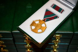 Zsigó Róbert, a Kulturális és Innovációs Minisztérium parlamenti államtitkára Kiss-Hegyi Anita kulturális kapcsolatokért felelős államtitkárral állami kitüntetéseket és művészeti díjakat, köztük Magyar Arany Érdemkeresztet, Magyar Ezüst Érdemkeresztet, valamint Magyar Bronz Érdemkeresztet adott át kedden Budapesten, a Pesti Vigadóban augusztus 20. alkalmából.