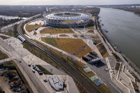 A drónnal készült fotón a Nemzeti Atlétikai Központ Budapesten, a Duna-parton 2025. január 27-én