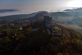 A cseszneki vár látképe a Bakonyban 2020. november 8-án