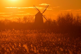 Kunhegyes, 2025. január 11. A Komlósi-féle szélmalom naplementekor Kunhegyesen 2025. január 11-én. Az 1859-ben épült szélmalom 1970 óta mûemléki védettség alatt áll. MTI/Czeglédi Zsolt