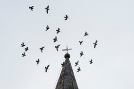 A nap kép: Galambok a nagybörzsönyi Szent Miklós-templom körül