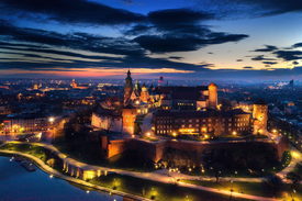 Krakkó, 2021. április 14. Napfelkelte a krakkói királyi vár, a Wawel felett 2021. április 12-én. A Wawel a krakkói óvárossal szerepel az UNESCO kulturális világörökségi jegyzékén.