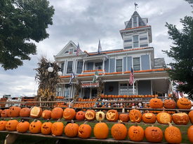 Kenova, 2021. október 29. A halloween alkalmából faragott töklámpások sorakoznak a nyugat-virginai Kenovában lévõ Pumpkin House (Tökház) épülete elõtt 2021. október 25-én. A kelta kultúrából eredõ halloween a boszorkányok, kísértetek és egyéb szellemek ünnepe, amelyet október 31-én, mindenszentek elõestéjén ünnepelnek.
