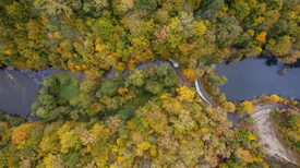 A drónnal készített képen a Medve-tó Erdélyben, a Maros megyei Szovátán (Sovata) 2024. október 15-én