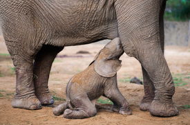 Afrikaielefánt-borjút (Loxodonta africana) eteti anyja, Kwanza a Nyíregyházi Állatpark kifutójában 2022. augusztus 29-én. Afrikai elefánt Magyarországon eddig csak Nyíregyházán született, a most világra jött elefántbika már a negyedik utód.
