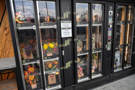 Virágárusító automata a lengyel fővárosban, Varsóban 2020. november 15-én