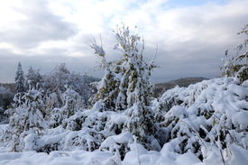 Behavazott táj Bánkúton 2021. október 14-én. Bánkúton 20-22 centiméter a hó vastagsága, de a jövő héten melegedés kezdődik, így a korán leesett hó nem sokáig marad meg a Bükkben.