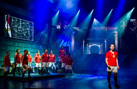 Puskás Ferenc szerepében a Puskás, a musical című előadás próbáján a Győri Nemzeti Színházban 2021. december 9-én. Szente Vajk, Galambos Attila és Juhász Levente darabját Szente Vajk rendezésében december 11-én mutatják be