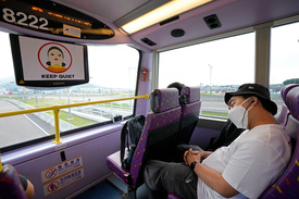 2021. október 21-én közreadott képen egy utas alszik az úgynevezett szundibuszon Hongkongban október 16-án. Az utazástól elgyötört és alváshiányos ingázók számára találták ki az új hongkongi busztúrát. A 76 kilométeres, ötórás út egy emeletes busszal körbejárja a területet azon emberek számára, akiket a hosszú utazások könnyen elaltatnak