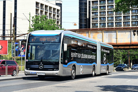 A 7 és 8E viszonylaton tesztüzemben közlekedő Mercedes eCitaro G típusú elektromos autóbusz a budapesti Thököly úton 2022. május 20-án
