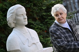 Wittner Mária, '56-os halálraítélt Tóth Ilona mellszobrának avatási ünnepségén a Bajcsy-Zsilinszky Kórház udvarán 2020. október 22-én. Tóth Ilona, az 1956-os forradalom mártírja, orvostanhallgató, a Nemzetőrség posztumusz őrnagya