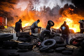 Holland és belga gazdák raklapokat és autógumikat égetnek az uniós agrárpolitika elleni tüntetésen egy autópályán, a belga határnál levő hollandiai Arendonk közelében 2024. február 2-án. Az utóbbi hetekben Belgiumban, Franciaországban, Olaszországban és Németországban is tiltakozóakciókat tartanak a mezőgazdaságban dolgozók a csökkenő bevételeik és romló gazdasági kilátásaik miatt.