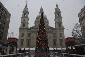 Hóesés Budapesten, a Szent István-bazilika közelében 2023. november 30-án