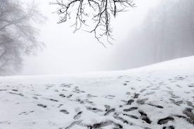 Lábnyomok a hóban Dobogókőn 2025. november 21-én. Borult, csapadékos idő várható a hétvégén, többfelé havazhat is