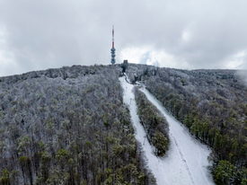 A drónnal készült képen havas táj Kékestetőn 2024. április 22-én