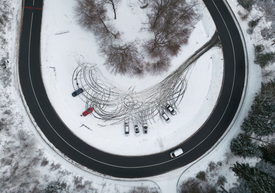Autók egy behavazott erdei parkolóban a Hessen tartománybeli Schmitten település közelében 2024. január 16-án