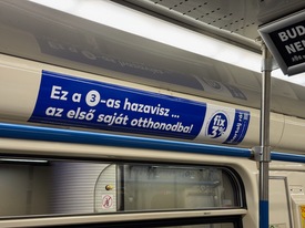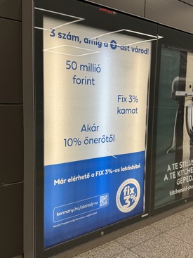 A fix 3 százalékos lakáshitelt az M3-as metróval párhuzamba állító hirdetés a budapesti metrón