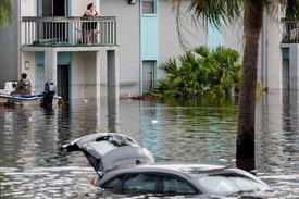 Autókat sodor az ár a floridai Clearwaterben 2024. október 10-én, miután a Milton hurrikán átvonult Florida állam középső része fölött, tengeráradást, valamint villámáradásokat és árvizeket okozva. A vihart megelőző napokban több millió embert utasítottak arra, hogy hagyják el otthonukat a várható tengerár miatt.