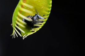 Befogott egy rovart a Vénusz légycsapója (Dionaea muscipula) nevű növény a húsevő növények kiállításán a kolumbiai főváros, Bogotá botanikus kertjében 2025. április 3-án