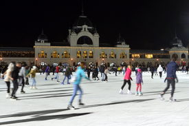 Budapest, 2021. november 20. Korcsolyázók a Városligeti Mûjégpályán 2021. november 20-án. Előző napon kezdődött meg a korcsolyaszezon Magyarország legnépszerűbb és leghangulatosabb télisport-helyszínén a Városligetben.