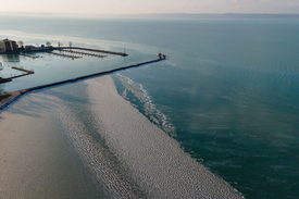 A drónnal készült képen jég látható a Balatonon Siófoknál 2023. február 8-án