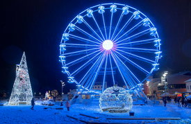 Adventi fénydíszek és óriáskerék a győri Dunakapu téren 2023. december 23-án