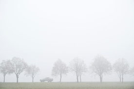 Autó a ködben Hajdúböszörmény közelében 2024. november 18-án