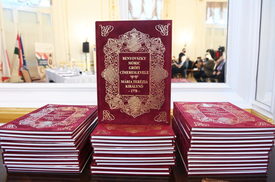 A Benyovszky Nemzeti Emlékbizottság Benyovszky Móric grófi címeres levele – Mária Terézia királynő – 1778 című, latin-magyar-angol nyelvű, sorszámozott, díszkiadású könyvritkasága az ünnepélyes bemutatóján, a Benyovszky-emlékév záró rendezvényén a Stefánia Palotában 2022. január 24-én