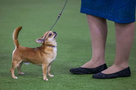 Rövid szőrű csivava a zsűri előtt a 149. Westminster kutyakiállításon New Yorkban 2025. február 10-én